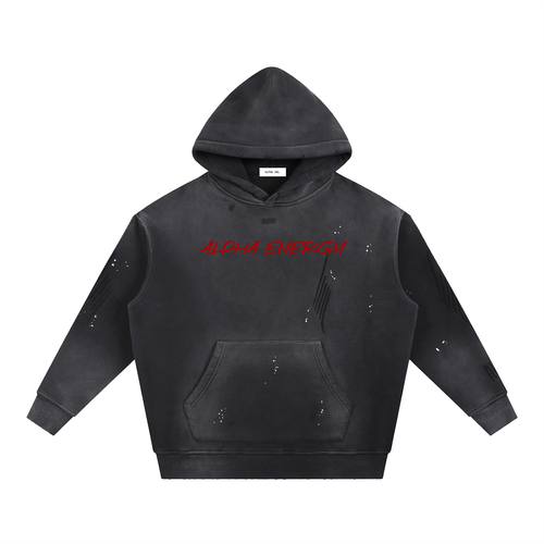 ALPHA ENERGY Washed Frayed Fleece Hoodie